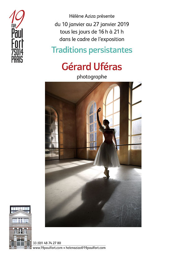 Hélène Aziza présente le travail de Gérard Uféras dans le cadre de l'exposition "Traditions persistantes", vernissage le jeudi 10 janvier 2019, à partir de 18h30, 19 rue Paul Fort 75014 Paris. Exposition du 10 au 27 janvier tous les jours entre 16h et 21h