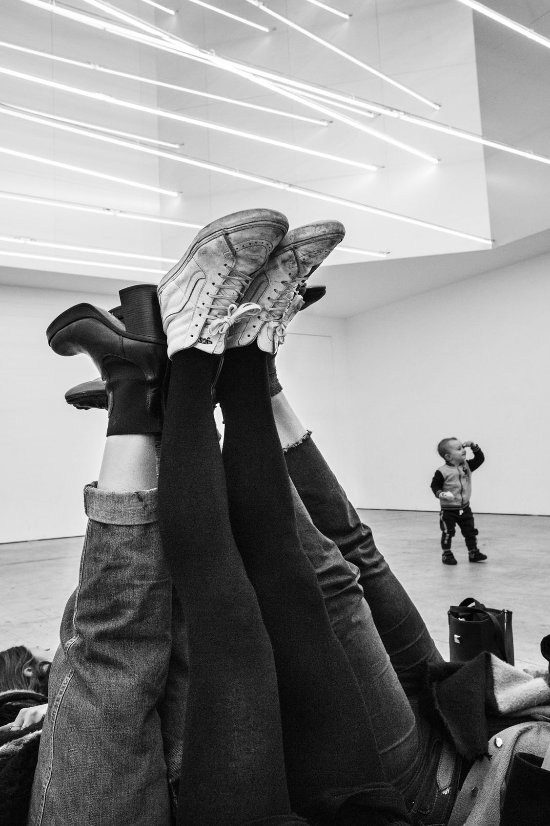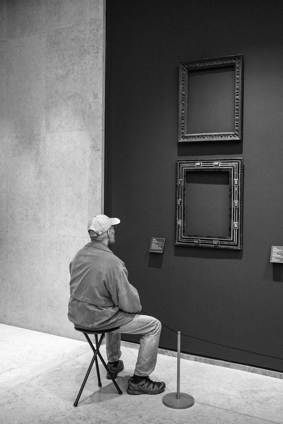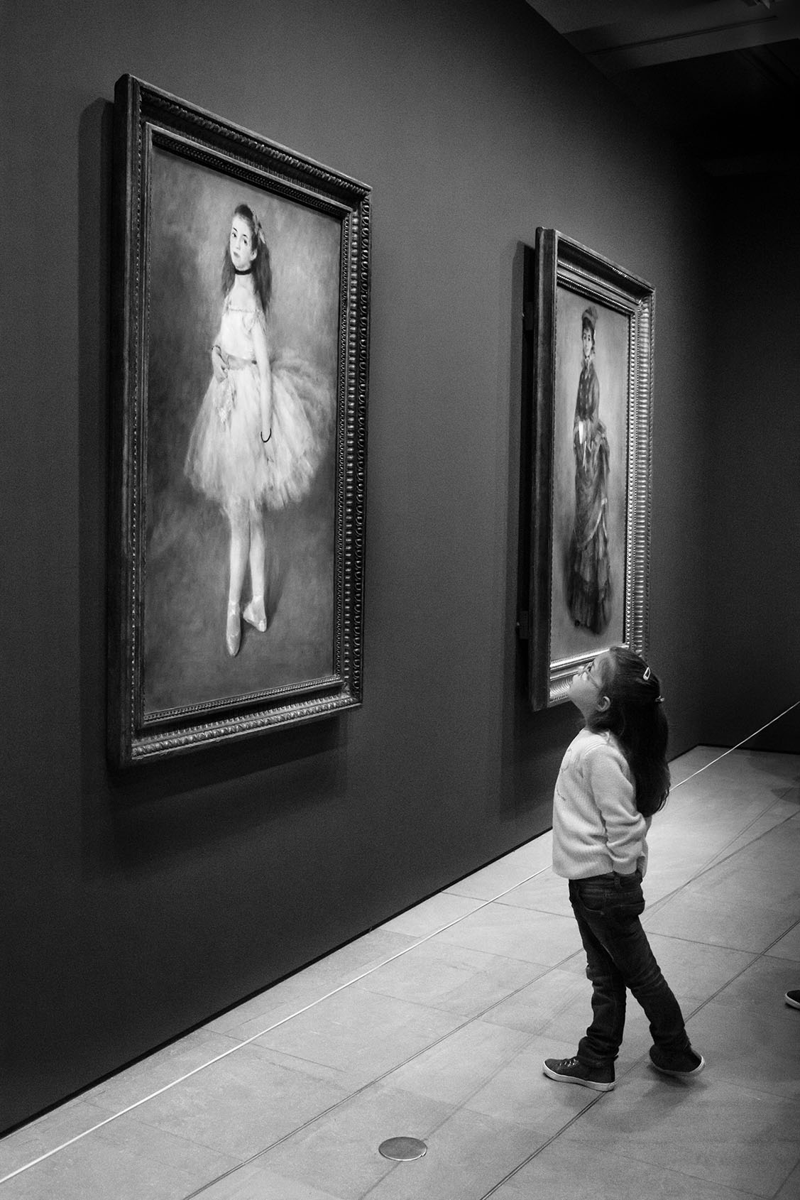 Just as Eugène Atget created a detailed record of Paris during his strolls around the city at the dawn of the 20th century, Gérard Uféras secures evidence for his documentary account in museums. In this environment he renders himself virtually invisible. Thus he manages to create, from a great distance, astonishing observations with immense intimacy, capturing insights into the souls of the museum visitors which are at the same time deeply personal, humorous and striking. He possesses a very special instinct for the open gaze of children at great works of art – though he also shows them unimpressed, sometimes exhausted, playing with soft toys on the floor or a bench at a museum, or falling asleep. Here his images are of almost tender attentiveness. The museum becomes the stage of the human, the all too human. Gérard Uféras captures these moments to perfection, reclaiming the museum – which too often becomes a mausoleum – for the living present.