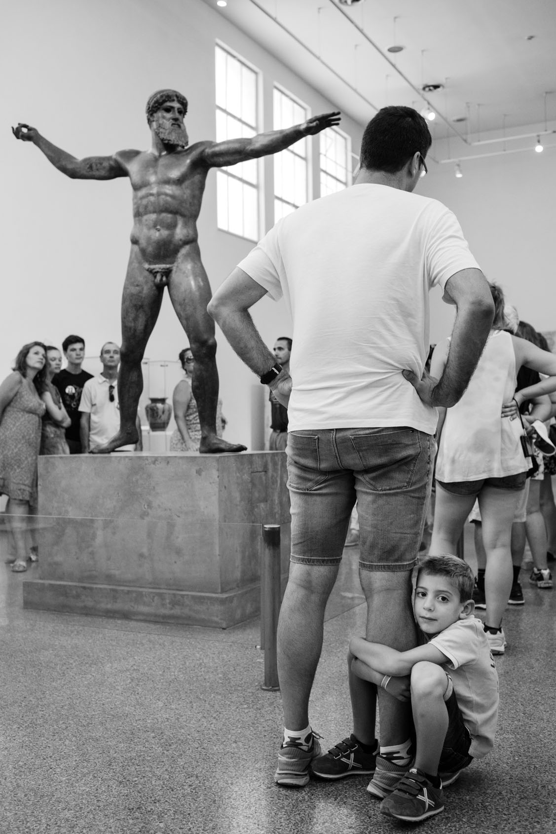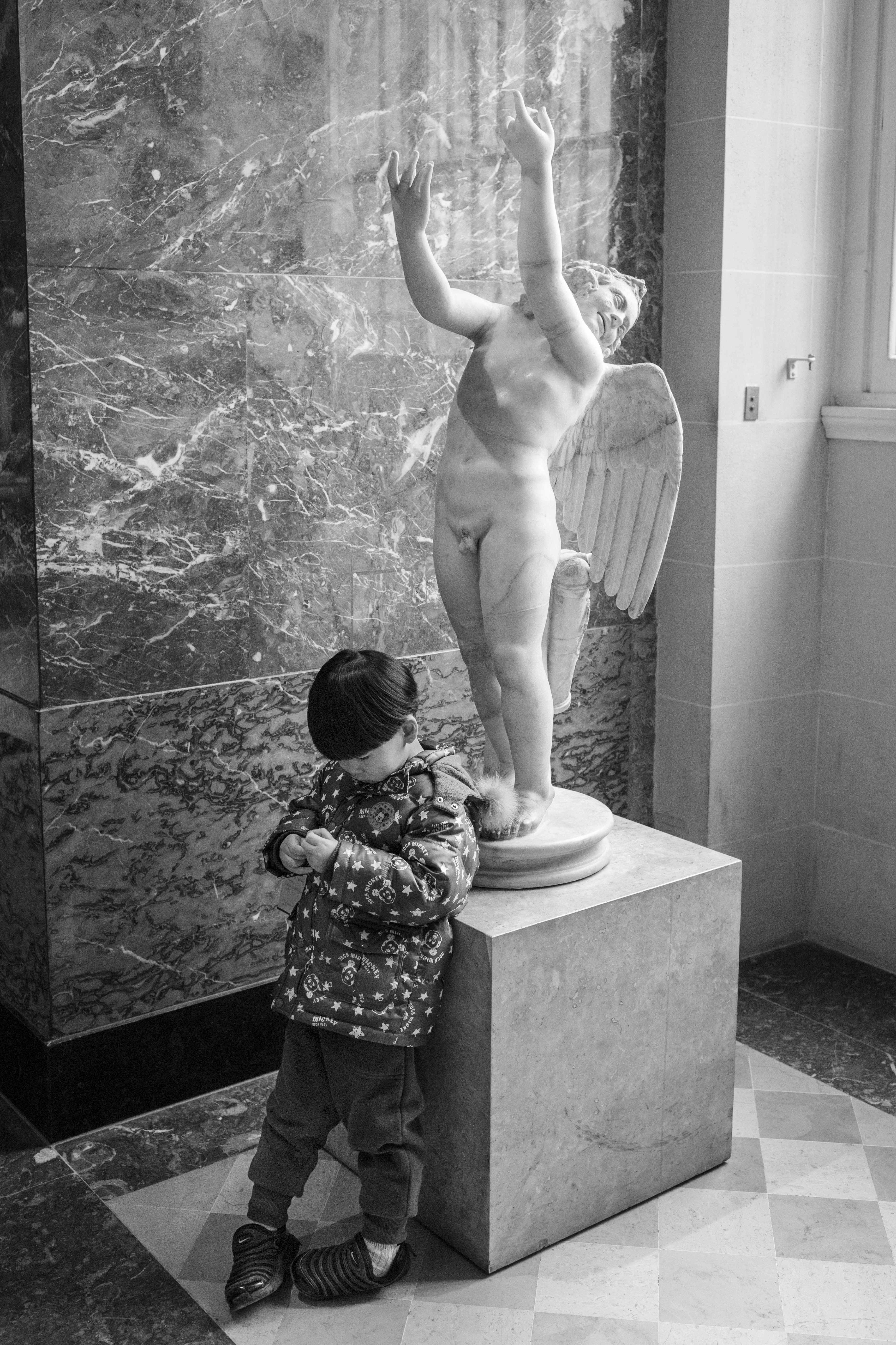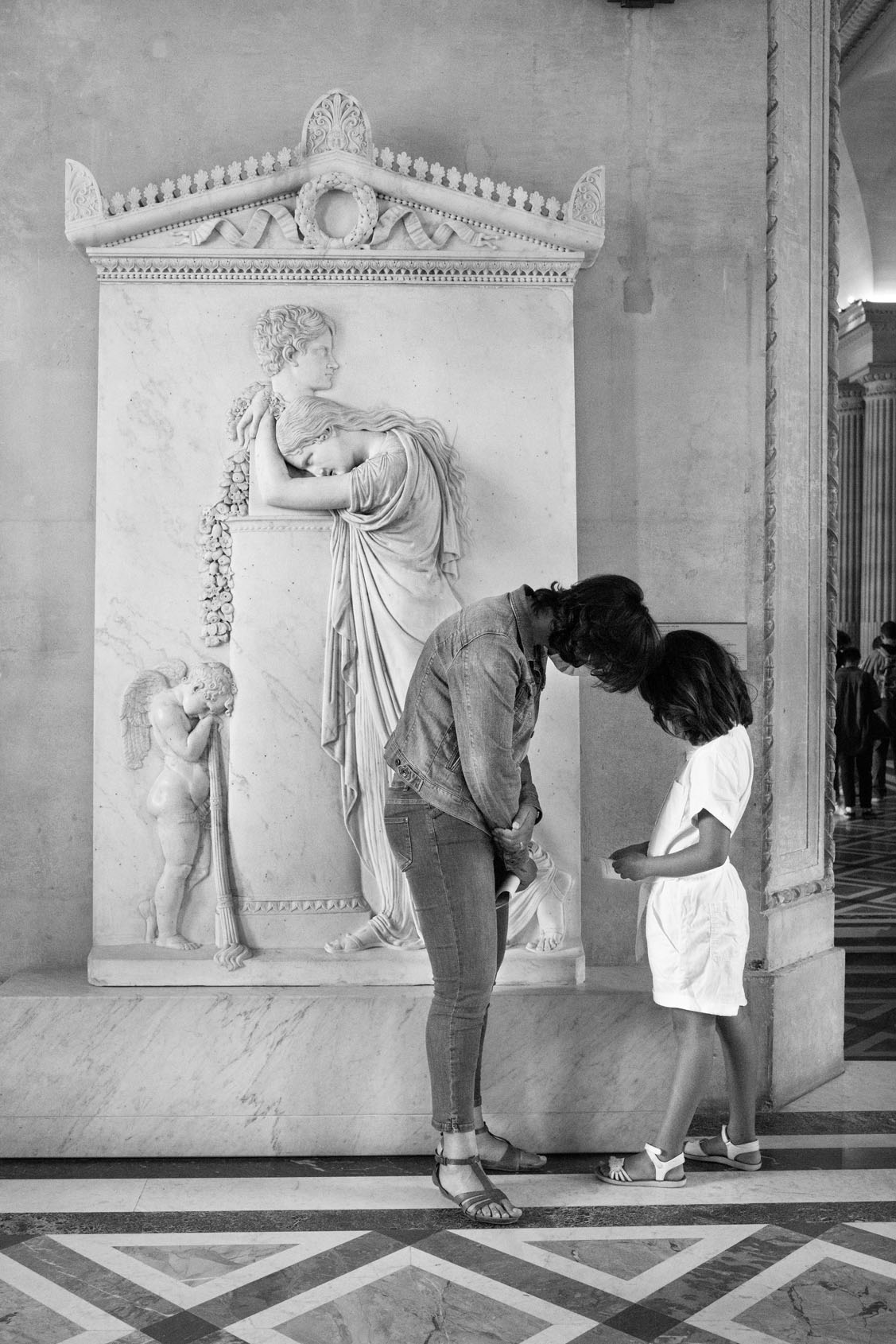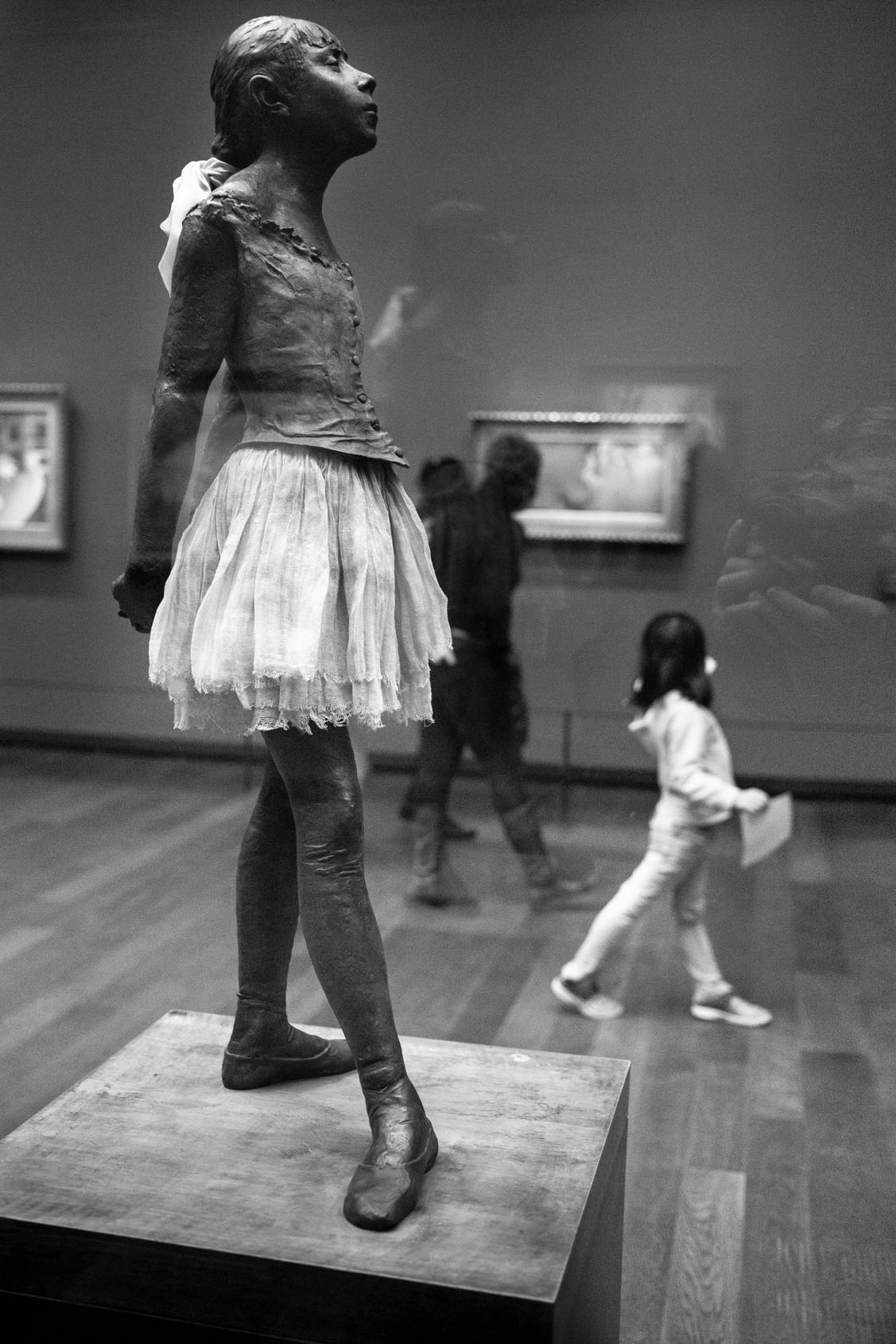 Just as Eugène Atget created a detailed record of Paris during his strolls around the city at the dawn of the 20th century, Gérard Uféras secures evidence for his documentary account in museums. In this environment he renders himself virtually invisible. Thus he manages to create, from a great distance, astonishing observations with immense intimacy, capturing insights into the souls of the museum visitors which are at the same time deeply personal, humorous and striking. He possesses a very special instinct for the open gaze of children at great works of art – though he also shows them unimpressed, sometimes exhausted, playing with soft toys on the floor or a bench at a museum, or falling asleep. Here his images are of almost tender attentiveness. The museum becomes the stage of the human, the all too human. Gérard Uféras captures these moments to perfection, reclaiming the museum – which too often becomes a mausoleum – for the living present.
