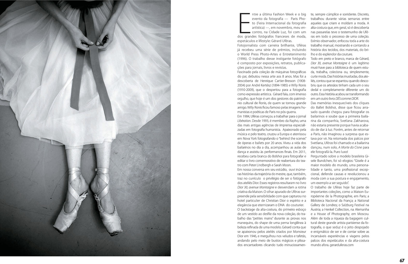 ou l’allure décontractée d’un modèle à la beauté insouciante. Sans voyeurisme, généreux, affable, il voit tout, nous dit tout : les tissus, les matières, les aiguilles et le fil comme l’éclat et le faste, l’esthétique du geste comme la fraîcheur des femmes. Gérard Uféras nous émerveille et nous émeut pour mieux nous révéler ces métiers, ces talents, ces savoir faire uniques qui signent une griffe. Avec en tête le new look, cet esprit Dior rendu célèbre dans la deuxième moitié du siècle dernier, c’est un regard actuel, sensible et tendre qu’il nous offre aujourd’hui sur la maison mythique. Uféras illumine avec subtilité les quatre lettres magiques qui, depuis Paris et partout dans le monde, continuent de faire briller la France.