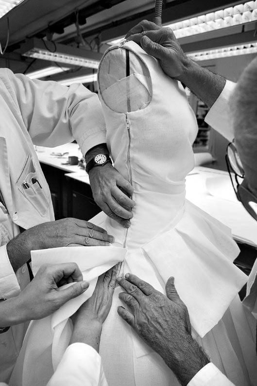 Les photographies de Gérard Uferas évoquent parfaitement l’atmosphère des coulisses des grandes maisons de couture parisiennes, et contribueront à plonger le visiteur dans ce monde où chaque instant est « précieux ».