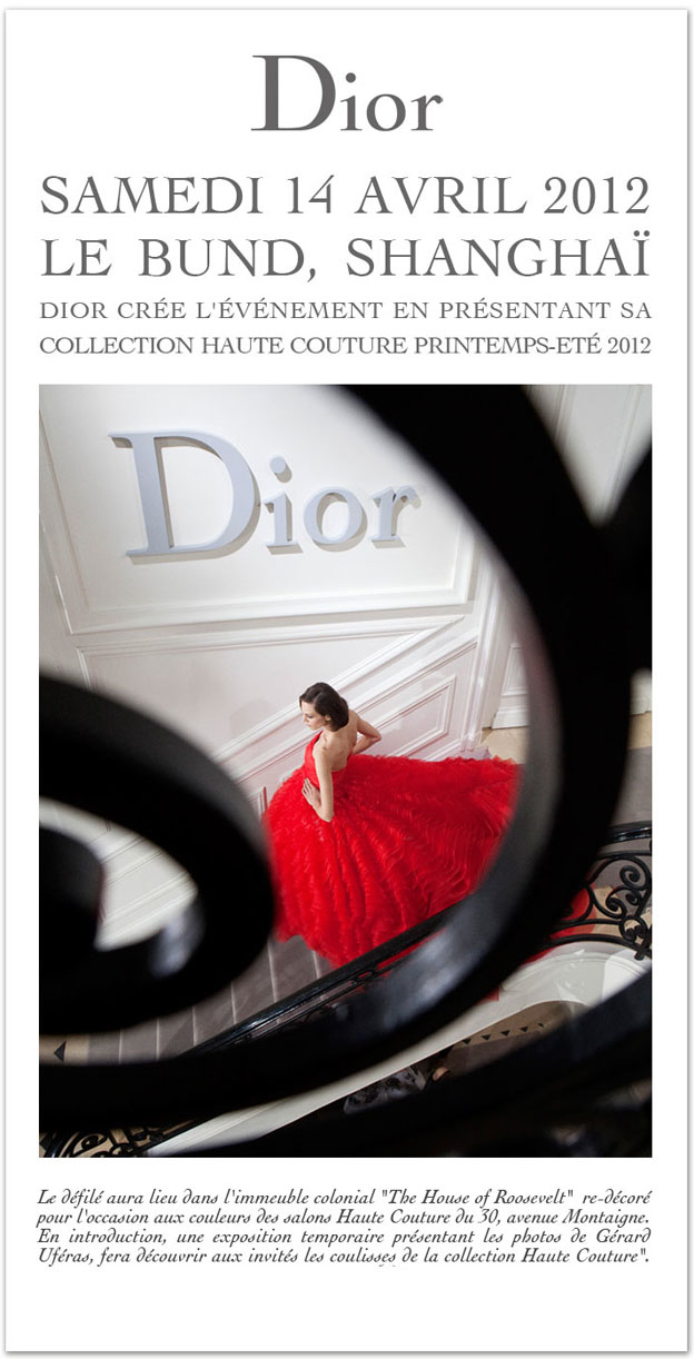 Exposition des photos de Gérard Uféras sur les coulisses de la collection Haute Couture Dior dans l’immeuble "The House of Roosevelt" Le Bund, Shanghaï, samedi 14 avril 2012