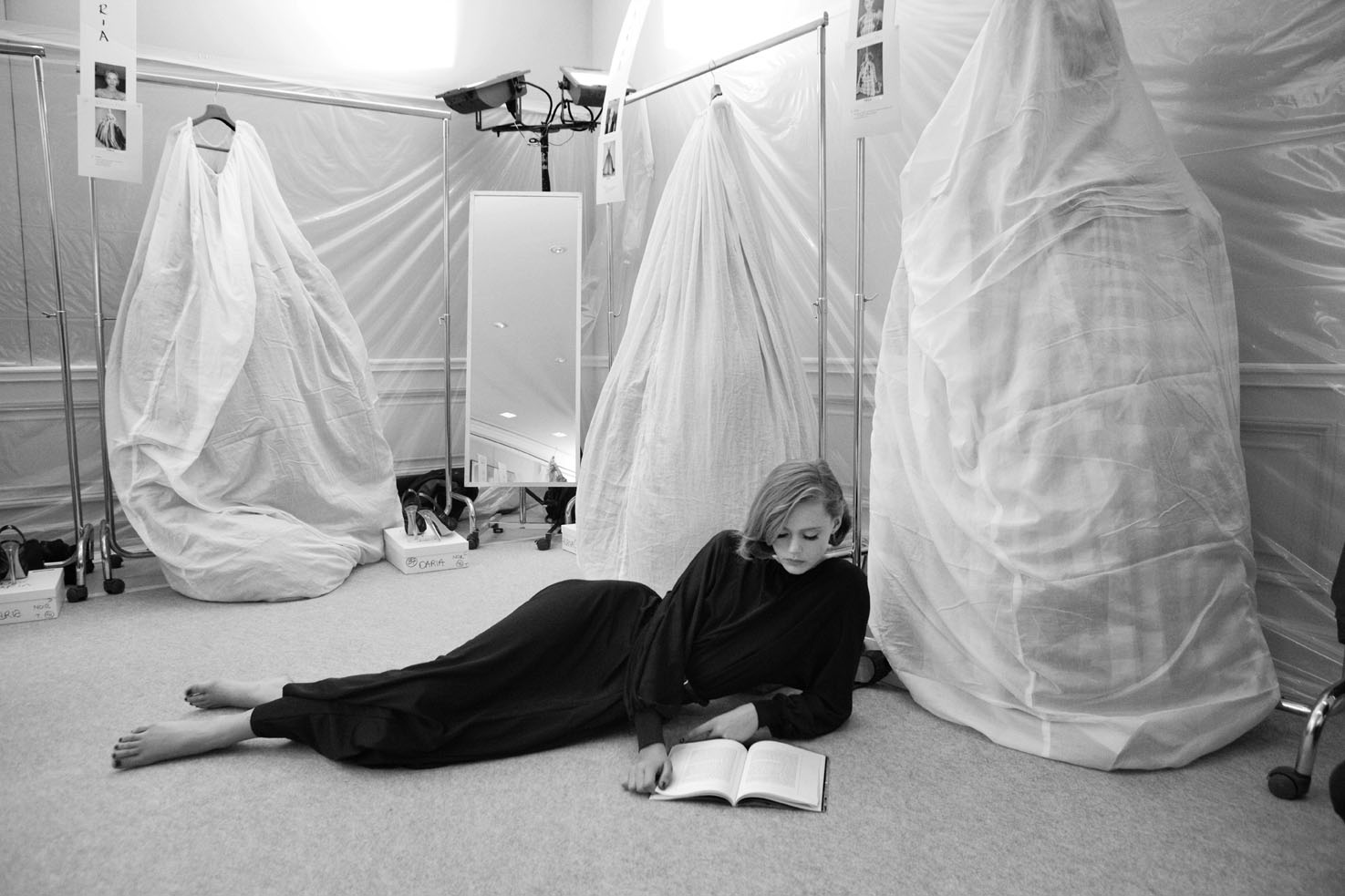 Fashion Stills invites you to take a peek behind the scenes at Dior, Chanel, Jean-Paul Gaultier, Yves St Laurent, Christian Lacroix, Givenchy with the famous faces of Karl Lagerfield, Carla Bruni and Kate Moss. Star photographers, Derek Hudson, Francoise Huguier, Jean-Marie Périer and Gérard Uféras, have succeeded in capturing unique moments on the haute couture catwalk, via an eccentric pose or by immortalising a dress, a design or a celebrated fashion designer’s work desk.