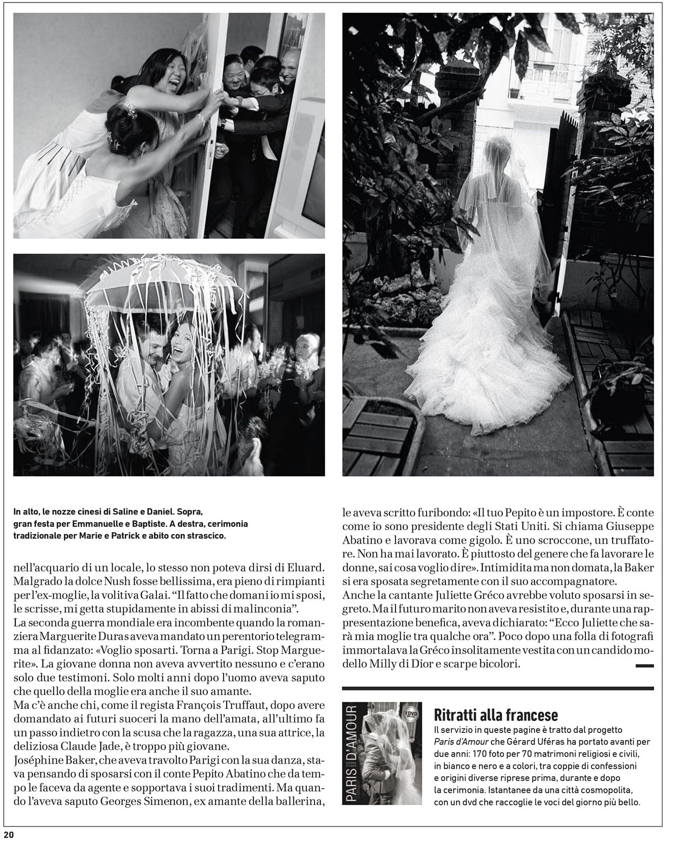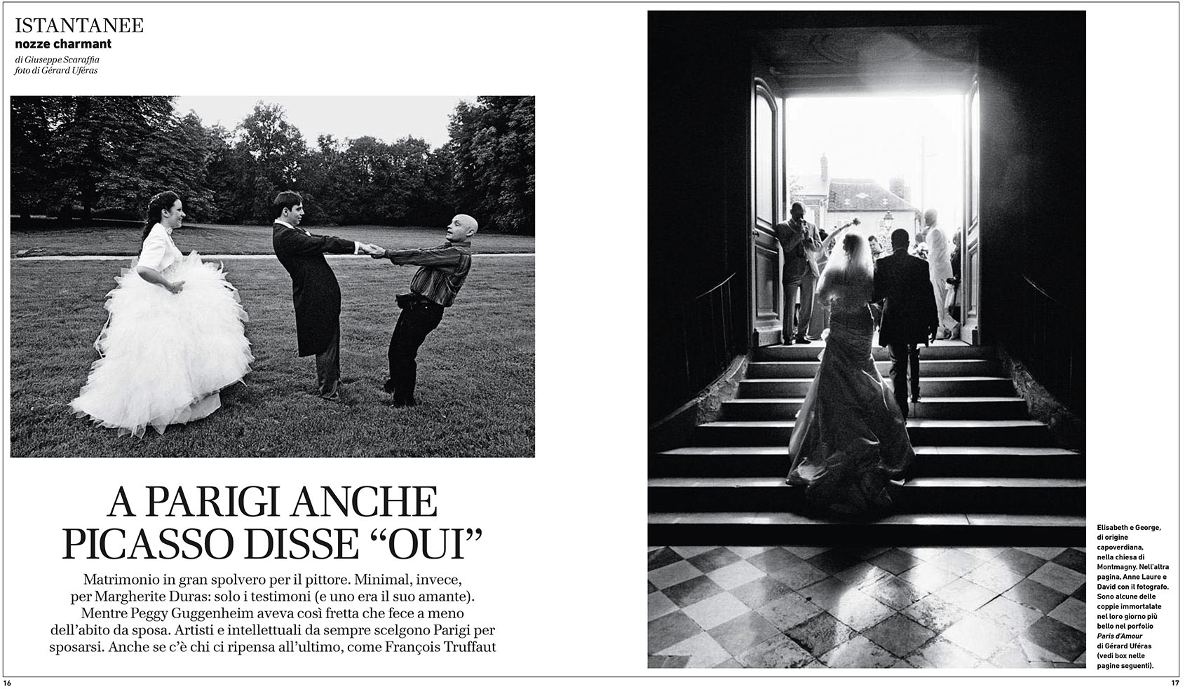 Ode à l’amour, "Paris d’amour" est un portrait de la ville lumière et de la joie de vivre de ses habitants. Gérard Uféras a photographié 70 mariages et pacs, révélant ainsi un kaléidoscope où il apparaît que quelques soient leurs origines sociales, culturelles, religieuses, tous les hommes et les femmes