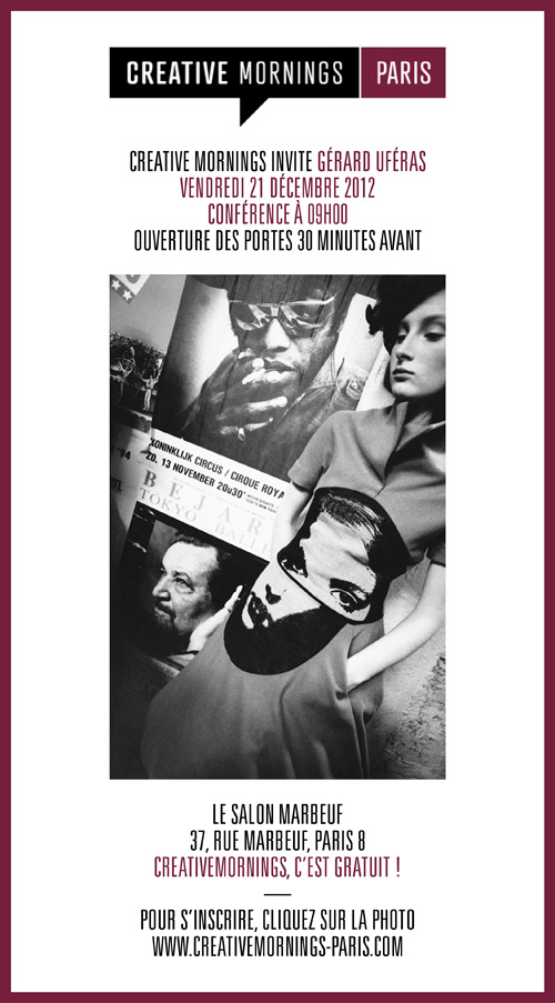Creative Mornings Paris invite Gérard Uféras, conférence vendredi 21 décembre à 9h