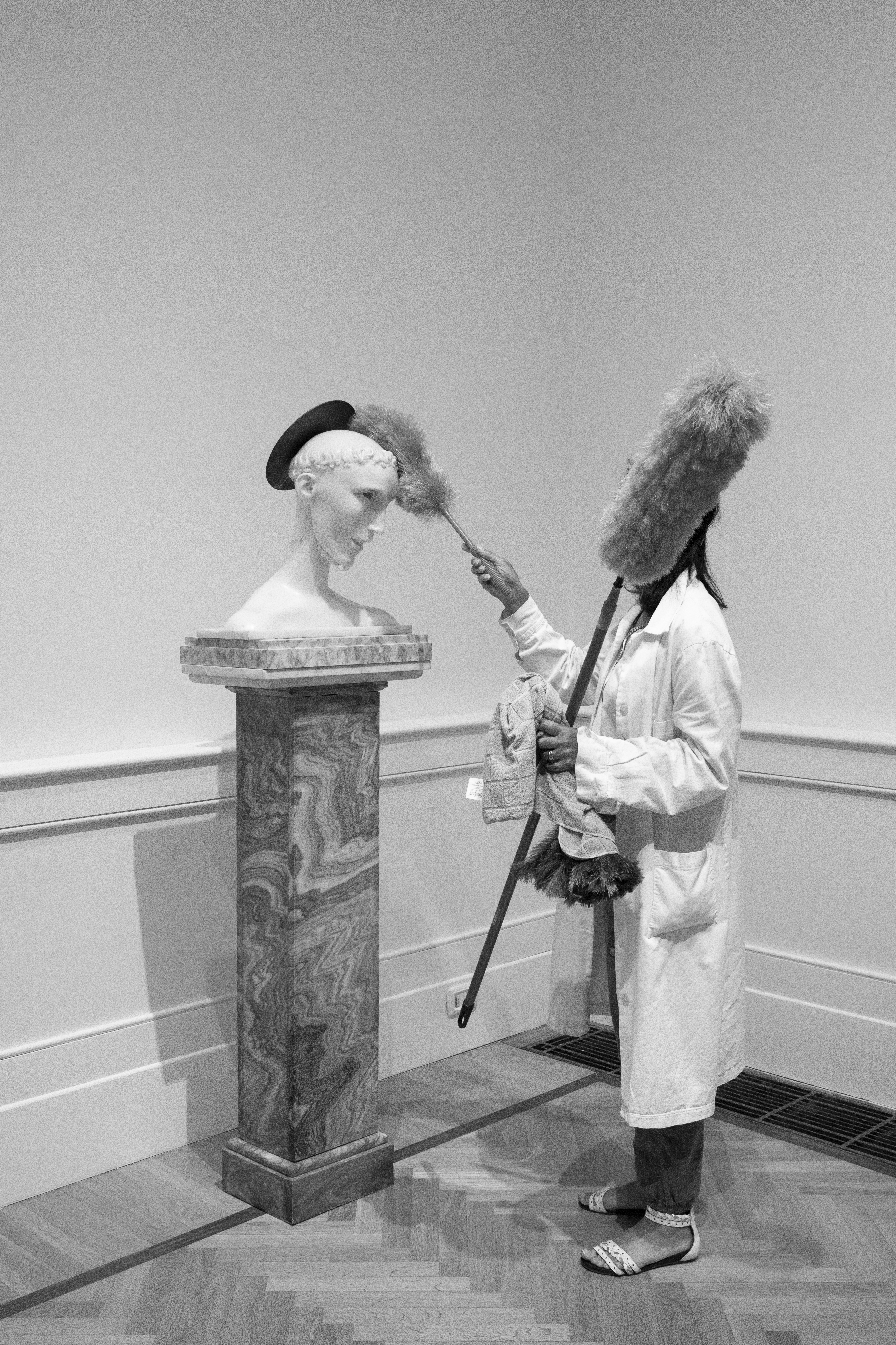 “A Day in the Museum” was first shown in spring 2019 at the Multimedia Art Museum in Moscow as part of the XI Moscow International Biennale “Fashion and Style in Photography”. The exhibition was curated by Olga Sviblova – the founder and director of MAMM – and was a great success with audiences and the press: over 80,000 visitors to the museum saw these photographs.